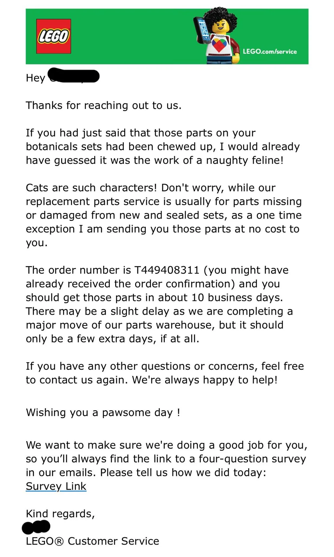 Lego's customer care reputation echoes their friendly, collaborative brand ethos – they stand out in their ability to bring brand ethos into everything they do. It's a deeply customer-centric approach that builds relationships through small gestures of good will and connection for customers looking for help.
