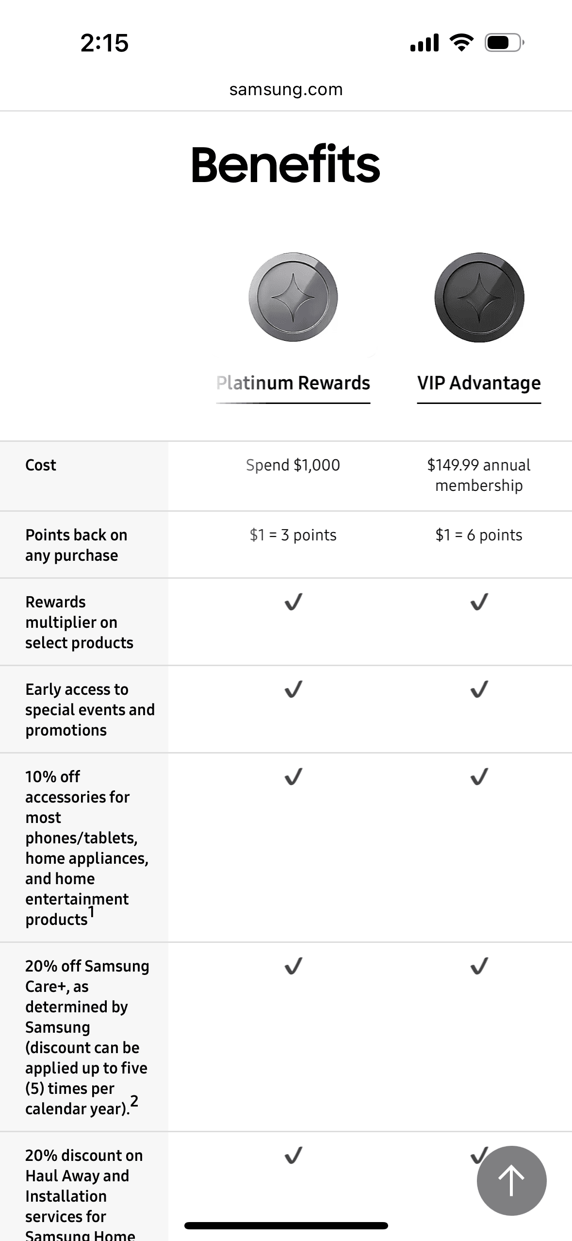 Samsung offers reward programs to encourage user loyalty within their ecosystem. The programs are tiered starting with a silver level which is free to join (automatic with sign-up).